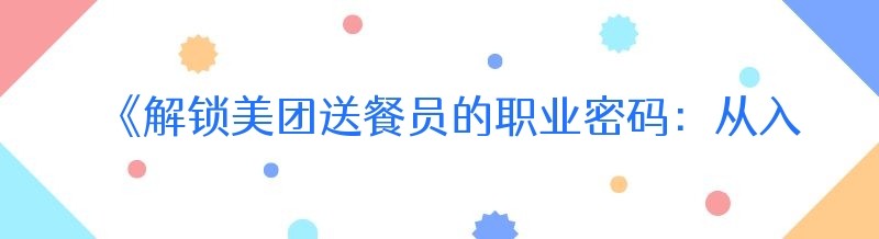 《解锁美团送餐员的职业密码:从入门到卓越》