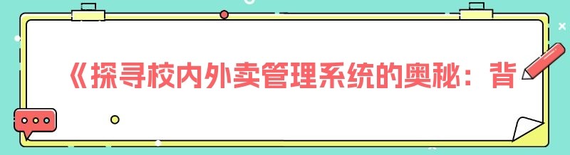 《探寻校内外卖管理系统的奥秘:背景与优质之选》