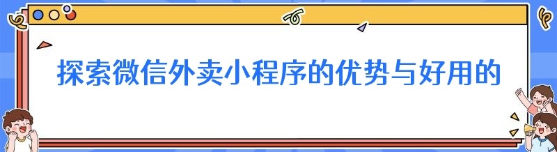 探索微信外卖小程序的优势与好用的微信外卖系统