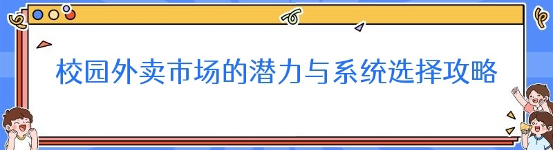 在大学校园里,学生们对于便捷美食的需求日益增长,这使得自营外卖在大学城搭建成为了一个颇具潜力的商业选择。那么,自营外卖在大学城究竟有多大的发展空间呢?又该如何选择合适的系统,避免踩坑呢?让我们一起来深入探讨。