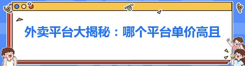 外卖平台大揭秘:哪个平台单价高且赚钱多?