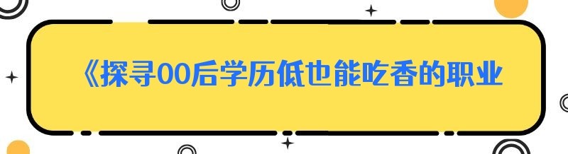 《探寻00后学历低也能吃香的职业之路》