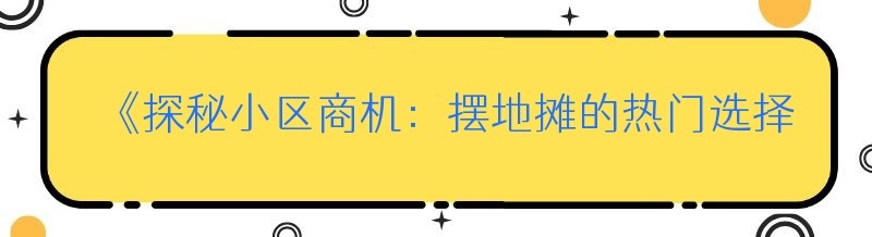在我们日常生活的小区中,其实隐藏着许多未被充分发掘的商机。对于那些想要创业或者增加收入的人来说,小区无疑是一个充满潜力的市场。而摆地摊作为一种成本较低、灵活性较高的创业方式,在小区中也有着广阔的发展空间。那么,小区究竟隐藏着哪些商机呢?在小区摆地摊卖什么又能更吸引人呢?让我们一起来揭开这个神秘的面纱。