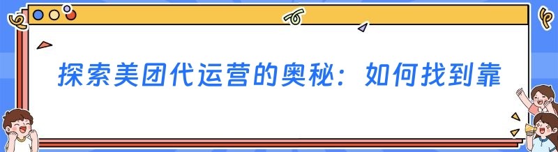 探索美团代运营的奥秘:如何找到靠谱的合作伙伴