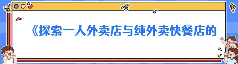 在当今的餐饮市场中,外卖行业正呈现出蓬勃发展的态势。一人就能干的外卖店以及纯外卖的快餐店逐渐成为许多创业者关注的焦点。那么,它们的前景究竟如何呢?