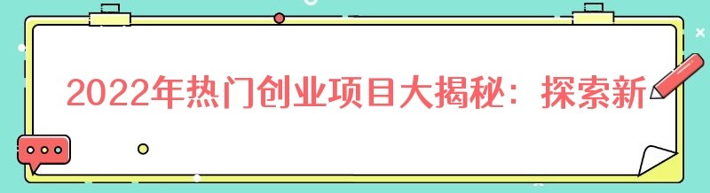 2022年热门创业项目大揭秘:探索新商机,开启财富之路