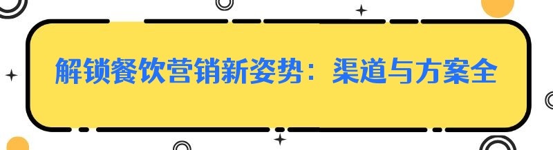 解锁餐饮营销新姿势:渠道与方案全攻略