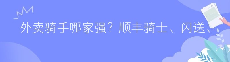 外卖骑手哪家强?顺丰骑士、闪送、美团、饿了么大比拼