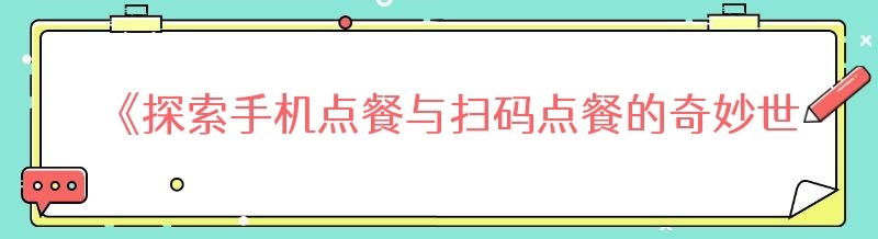 《探索手机点餐与扫码点餐的奇妙世界》