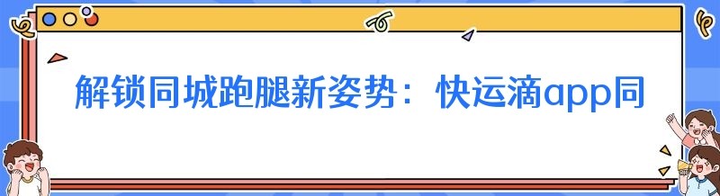 解锁同城跑腿新姿势:快运滴app同城配送全攻略
