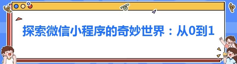 探索微信小程序的奇妙世界:从0到1的搭建之旅