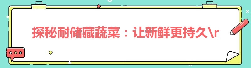 探秘耐储藏蔬菜:让新鲜更持久