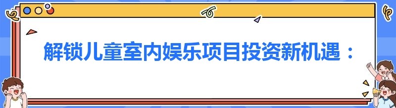 在当今社会,儿童消费市场日益繁荣,儿童室内娱乐项目作为其中的重要组成部分,吸引了众多投资者的目光。那么,在2026年,投资儿童室内娱乐项目是否可行呢?让我们一起来深入探讨一下。