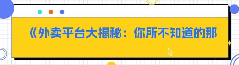 《外卖平台大揭秘:你所不知道的那些事儿》
