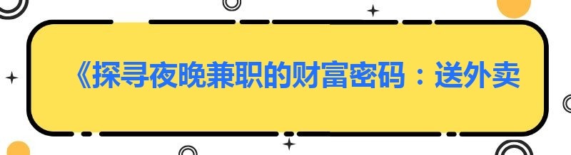 《探寻夜晚兼职的财富密码:送外卖与其他热门选择》