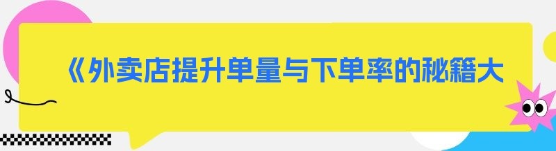 在竞争日益激烈的外卖市场中,如何提高外卖单量和下单率成为了众多外卖店老板们关注的焦点。以下是一些实用的方法和策略,帮助您的外卖店脱颖而出,吸引更多顾客下单。