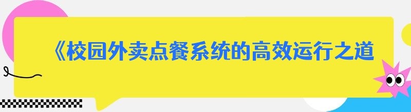 - 《掘金校园外卖配送平台,探索创业盈利新路径》