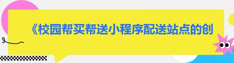 《校园帮买帮送小程序配送站点的创业指南》