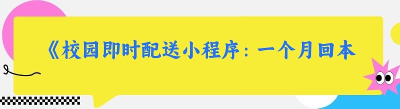 《校园即时配送小程序:一个月回本的财富密码,前景究竟如何?》