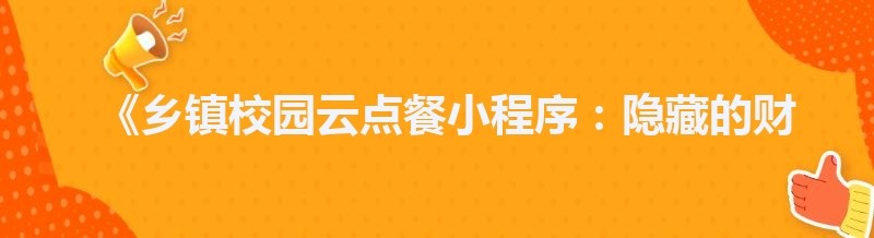 《乡镇校园云点餐小程序:隐藏的财富密码?》