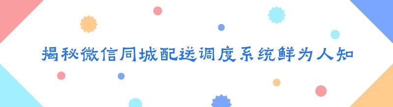 在当今的商业世界中,同城配送已经成为了许多企业和商家不可或缺的一部分。而微信同城配送调度系统,作为一种新兴的配送管理工具,正逐渐受到越来越多的关注。然而,你是否知道,这个看似普通的系统,其实有着许多不为人知的特点呢?今天,就让我们一起来揭开它的神秘面纱。
