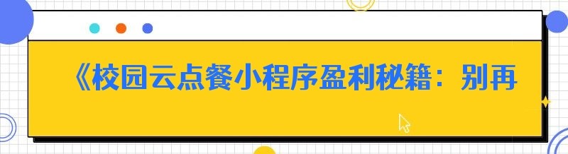 《校园云点餐小程序盈利秘籍:别再走错第一步》