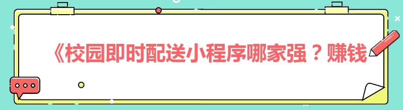 《校园即时配送小程序哪家强?赚钱秘诀大揭秘》