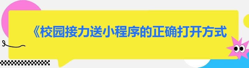 《校园接力送小程序的正确打开方式,你get到了吗?》