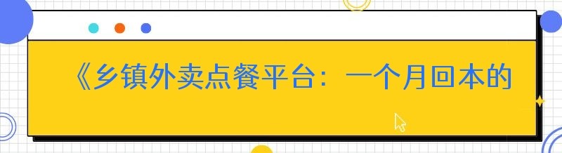 《乡镇外卖点餐平台:一个月回本的创业新机遇》