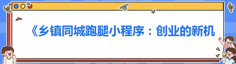 《乡镇同城跑腿小程序:创业的新机遇与挑战》