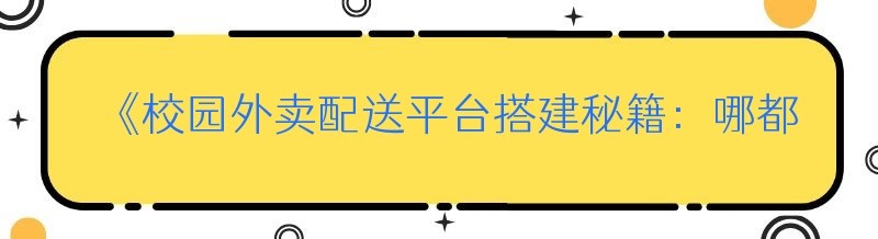 - 《掘金校园外卖配送:开店秘籍与详细流程全解析》