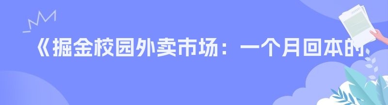 《掘金校园外卖市场:一个月回本的聚合平台好时机》