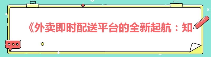 编辑 《外卖即时配送平台的全新起航:知识大揭秘》